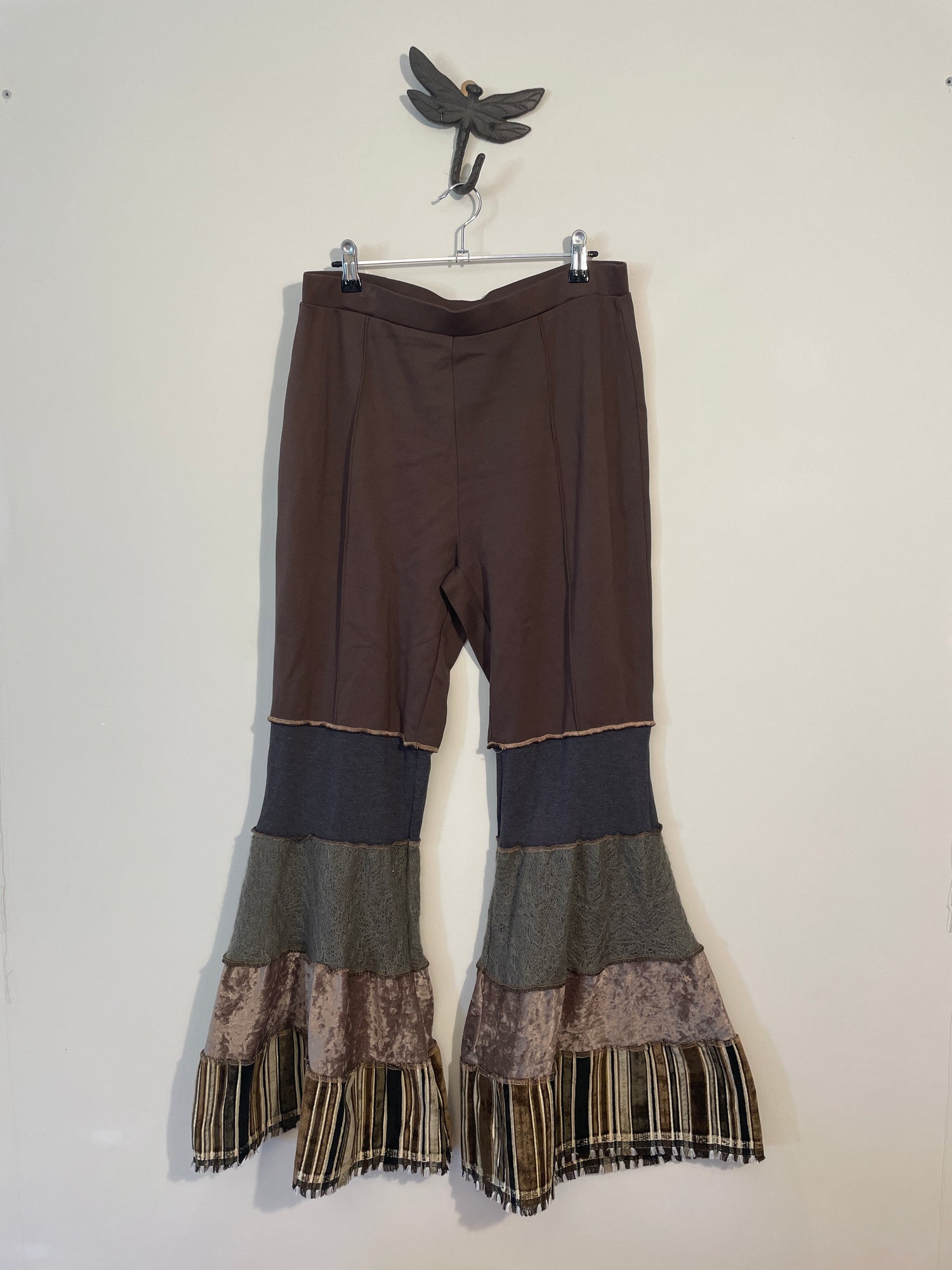 Shop one-off tiered flare pants, made from recycled materials in Western Australia....